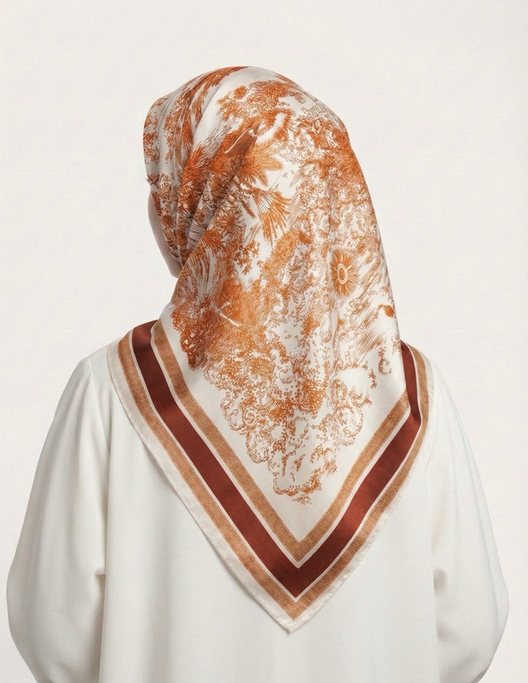 Square Hijab Silk - Forest Orange